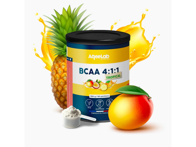 Les BCAA 4:1:1 d’AqeeLab Nutrition sont une formulation avancée d’acides aminés à chaîne ramifiée (leucine, isoleucine et valine) avec une proportion accrue de leucine, ce qui favorise une réponse anabolique optimale pendant et après l’entraînement. Ce ratio 4:1:1 signifie que pour chaque 4 parties de leucine, il y a 1 partie d’isoleucine et 1 partie de valine — une stratégie qui peut aider à maximiser la synthèse des protéines musculaires. Points forts :